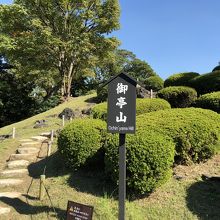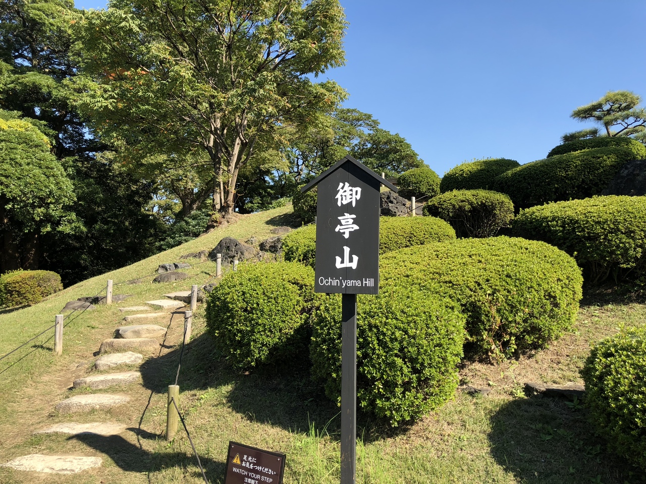 小高い丘になっていて、おそらくツツジだと思われる低木が綺麗に刈り込まれ、こんもりとした姿が可愛らしく並んでいました。お花の時期にはまさにミニ庭園な雰囲気を満喫できそうな場所です。