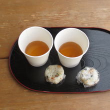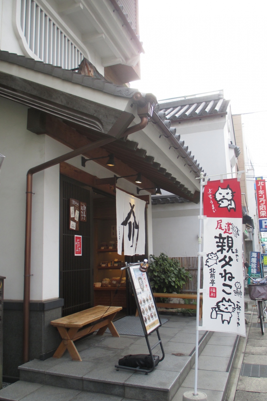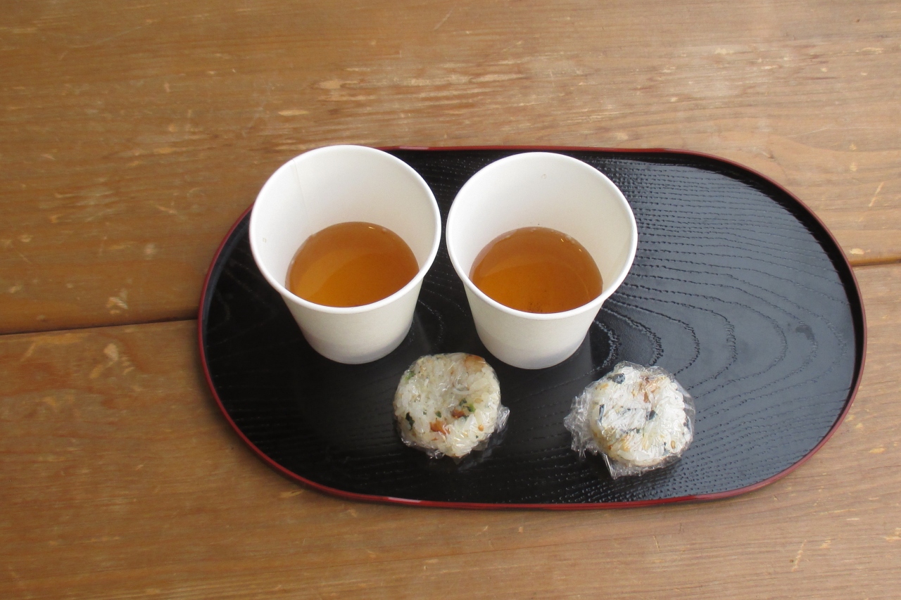 北前亭本店を通り掛かり、ちょっと覗いてみました。一口ちりめんおにぎりとほうじ茶がすぐ出てきました。ちりめんおにぎりも美味しかったのですが、寒い日だったのでほうじ茶が格別美味しかったです。また、表の「親父ねこ、一杯どうや」の幟を見ていたら、この場で早速ちょっと一杯頂きたくなってしまいました。それは我慢して、取り敢えず自分用のお土産が買えました。