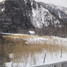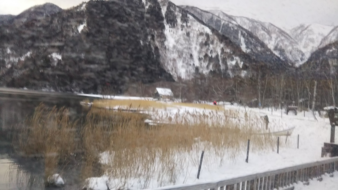 湖が凍っていて水墨画のような景色が広がっていました。時間がそこだけ止まったような感じで幻想的でした。