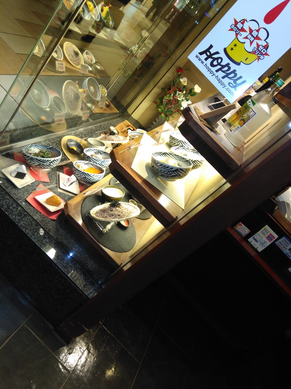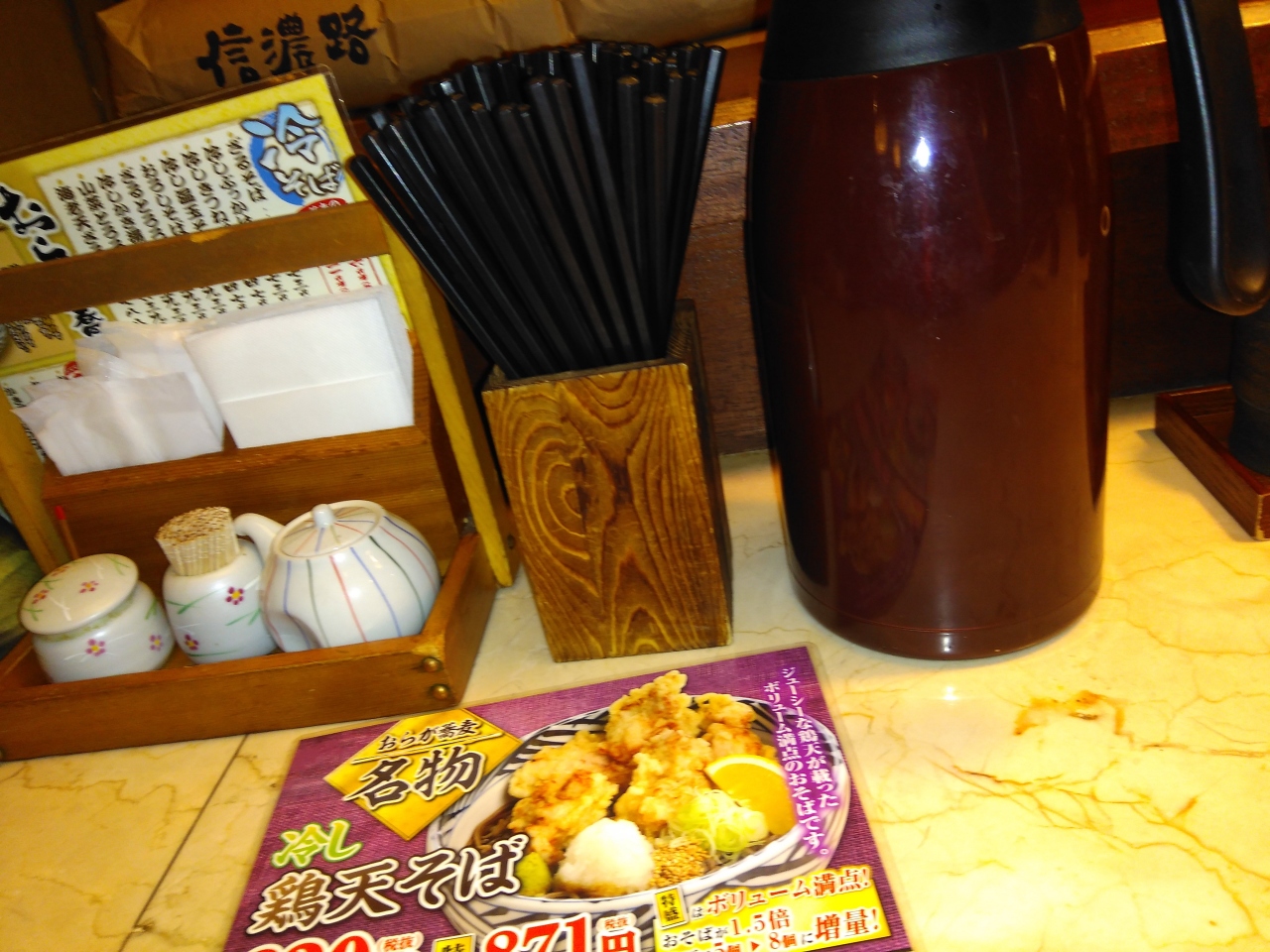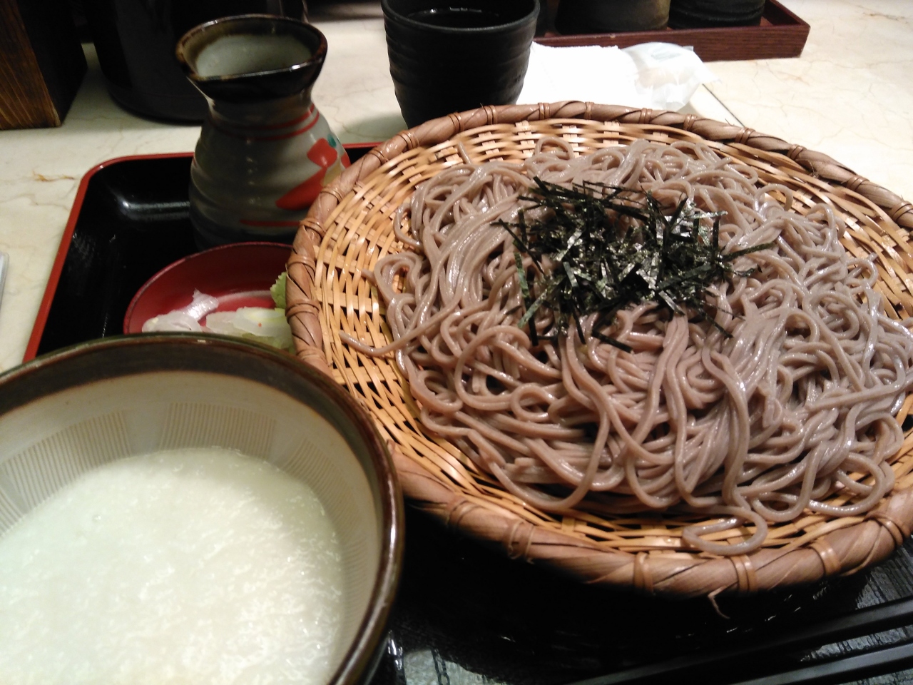 八重地下の手軽に入れるお蕎麦やさんです。田舎蕎麦の特徴的な色とおつゆがツルッと食べれてしまいます。とろろにネギとわさびを少々入れてツユを少しづつ入れながら頂きます。ザルそばのの量はごく普通で女性でも完食してしまいます。