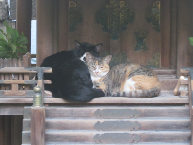 小さな本殿上に猫が二匹憩っていてびっくり!