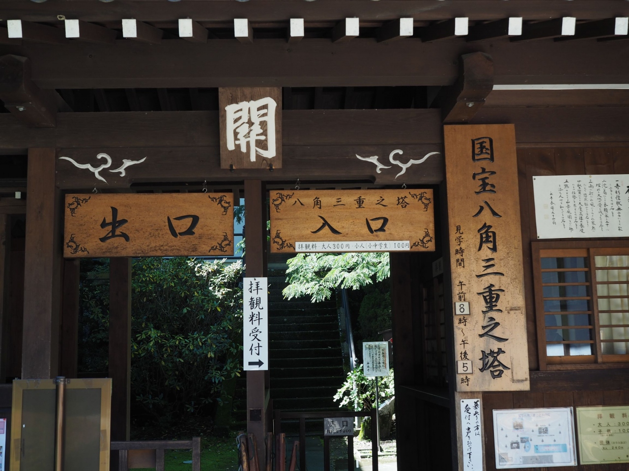 お寺自体は無料で拝観出来ますが、「八角三重塔」を見るためには拝観料300円が必要となります。