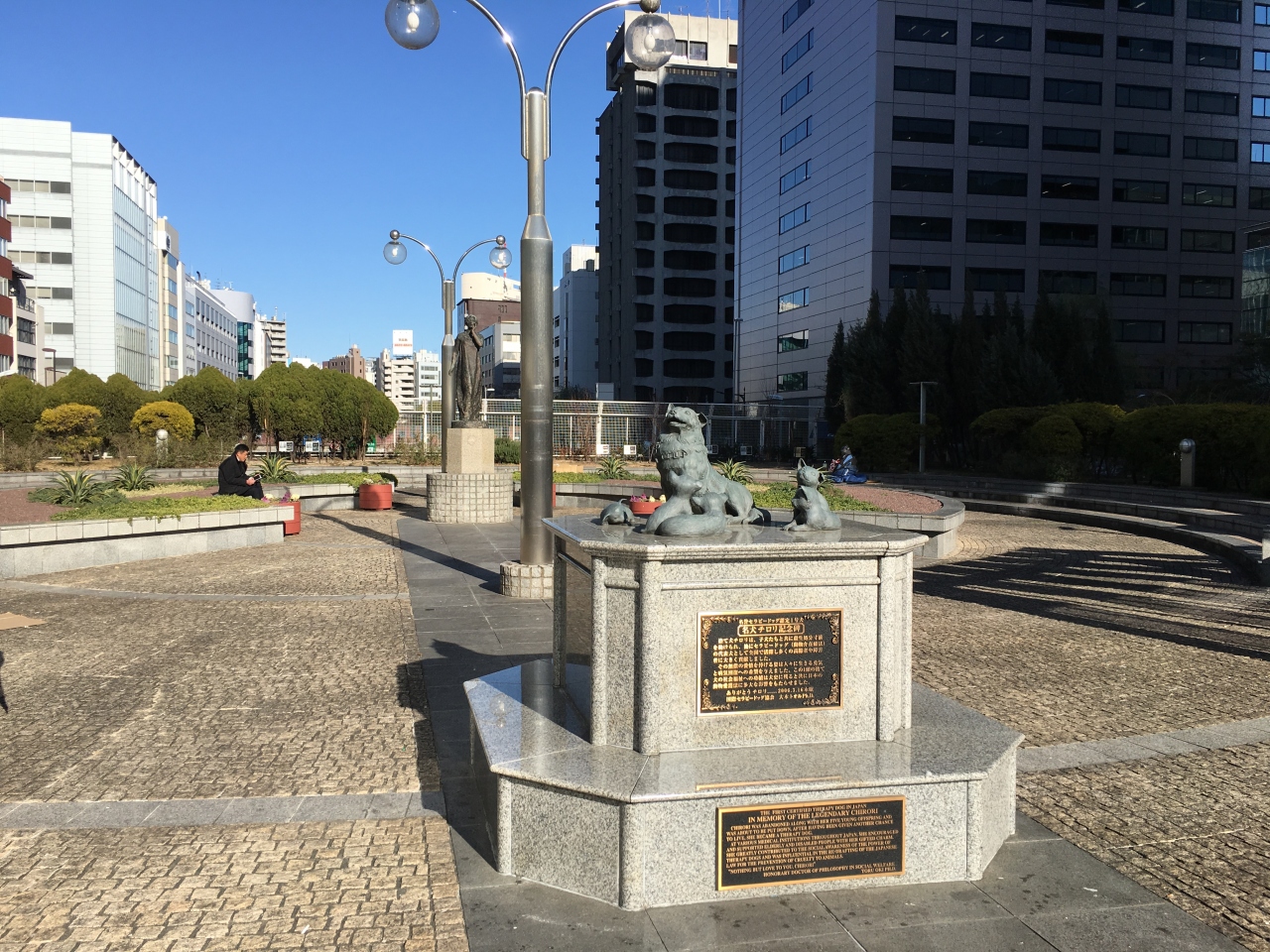 築地川銀座公園といえば、殺処分を免れて名セラピードッグとして世に貢献したチロリの像が立つ公園です。