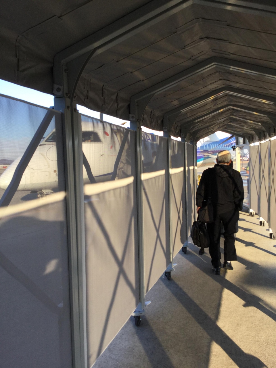 いつもは 搭乗ゲートから バスで飛行機まで移動していました