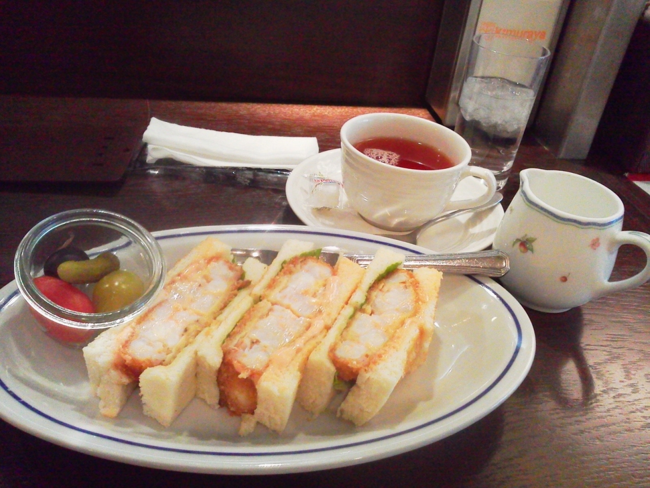私のお気に入りは海老カツサンド単品1200円。プラス400円でドリンクがつけられます。