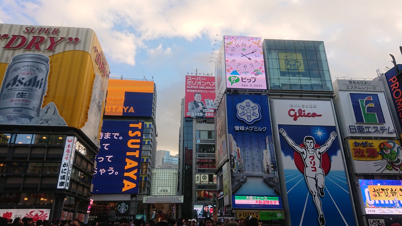 昔はひっかけ橋とも呼ばれたグリコの看板が目印の戎橋。相変わらずの混雑です。昔と比べると訪日客の増加を反映し、とにかく大陸から来られた方が多いです。ゆっくりと買い物を楽しむなら、他へ行った方がよいですね。