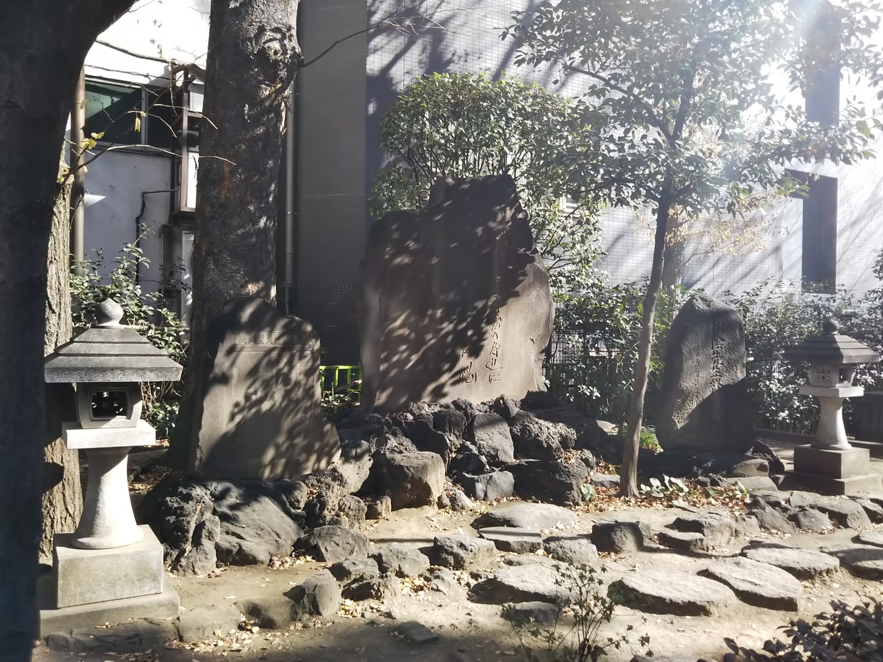 地下鉄小伝馬町駅に近い十思公園の中、奥に石碑が並んでいます。この公園と大安楽寺は嘗て伝馬町牢屋敷が在った場所でした。安政の大獄で投獄された吉田松陰は此処で最後を迎えました。今は辞世の句の碑など供養の為の碑は建てられていますが、当時の面影を残した物は何も有りません。
