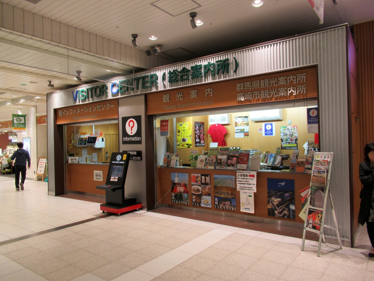 高崎駅のコンコースに観光案内所がありました。新幹線の改札口と在来線の改札口との中間という目立つ場所にありますが、私が到着した週末の夕方のコンコースはすごい人波で、あまり落ち着いて相談できるような雰囲気ではありませんでした。