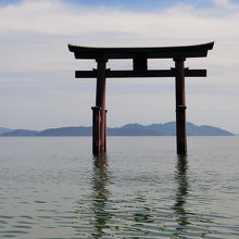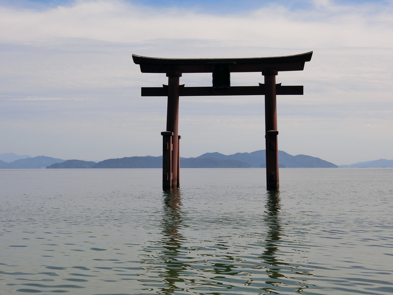 びわ湖のなかに浮かぶように建つ朱塗りの鳥居は、近江の厳島とも言われています。