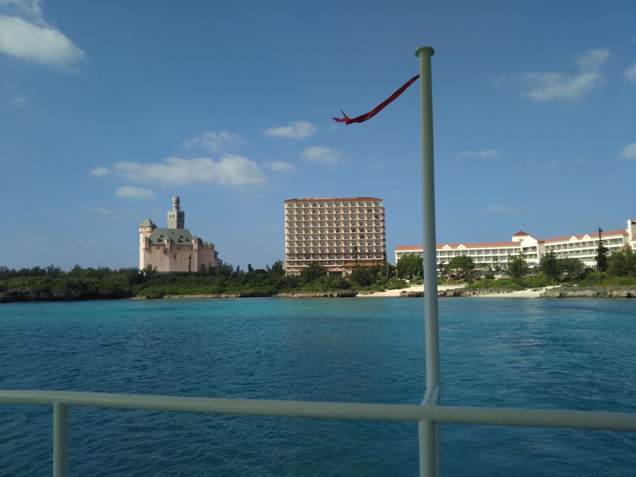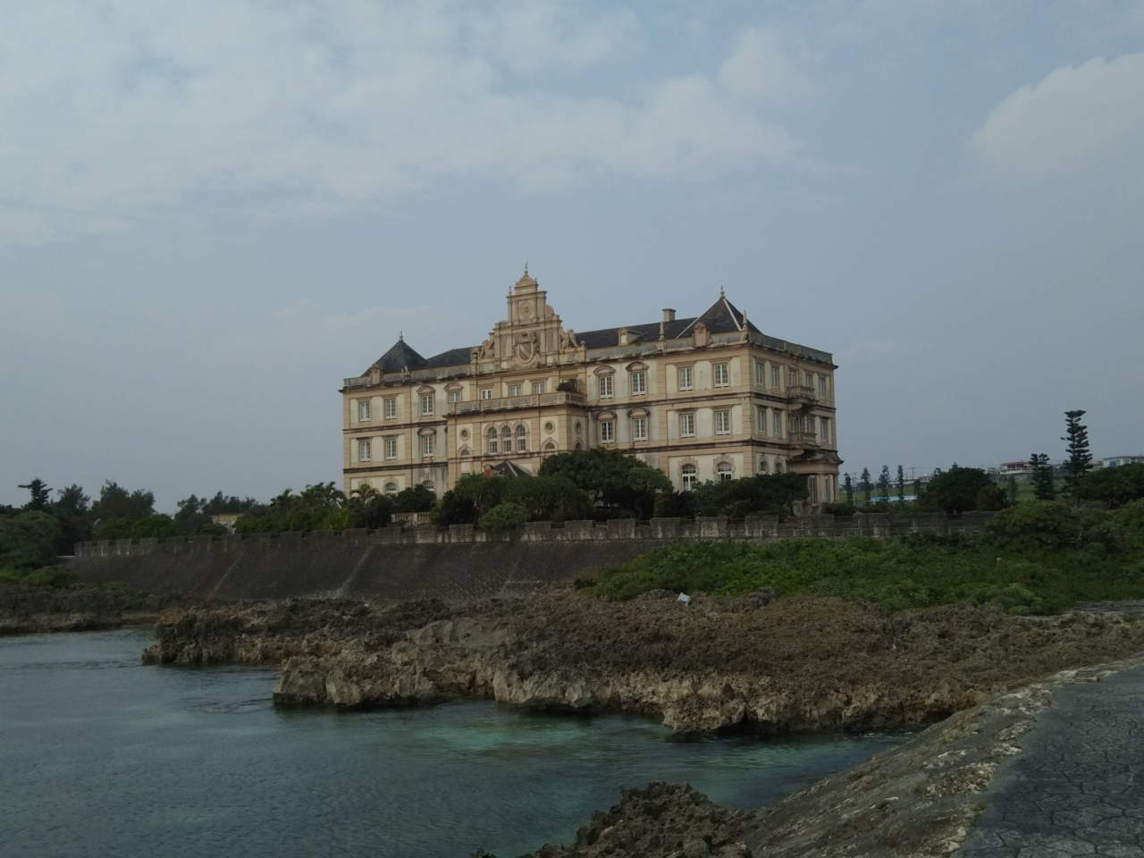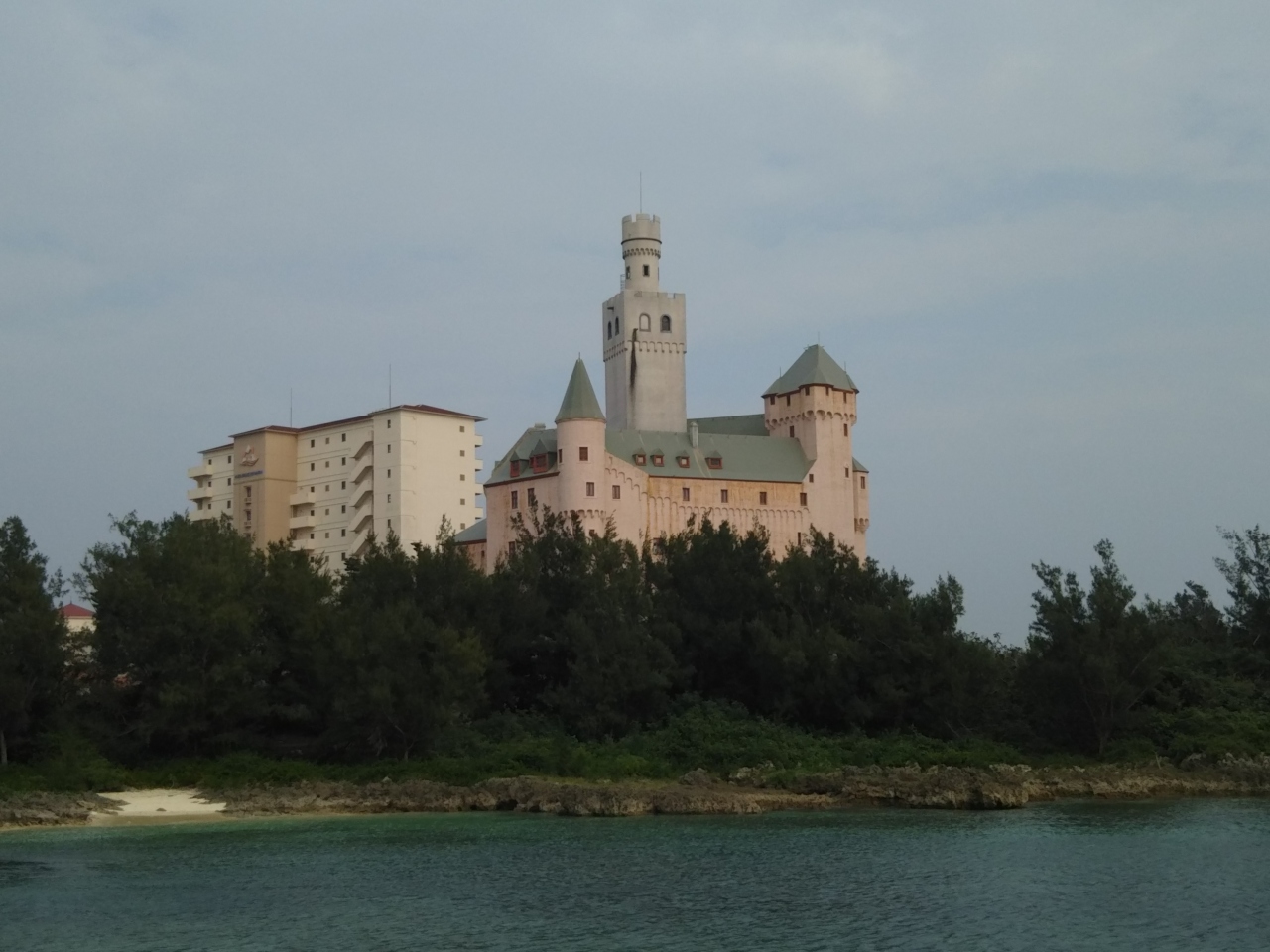 再建古城と青い海とのコラボ (うえのドイツ文化村)