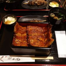 たっぷりとうなぎを味わえて、しかも肝串に肝吸がついているお重が4000円でいただけます。
