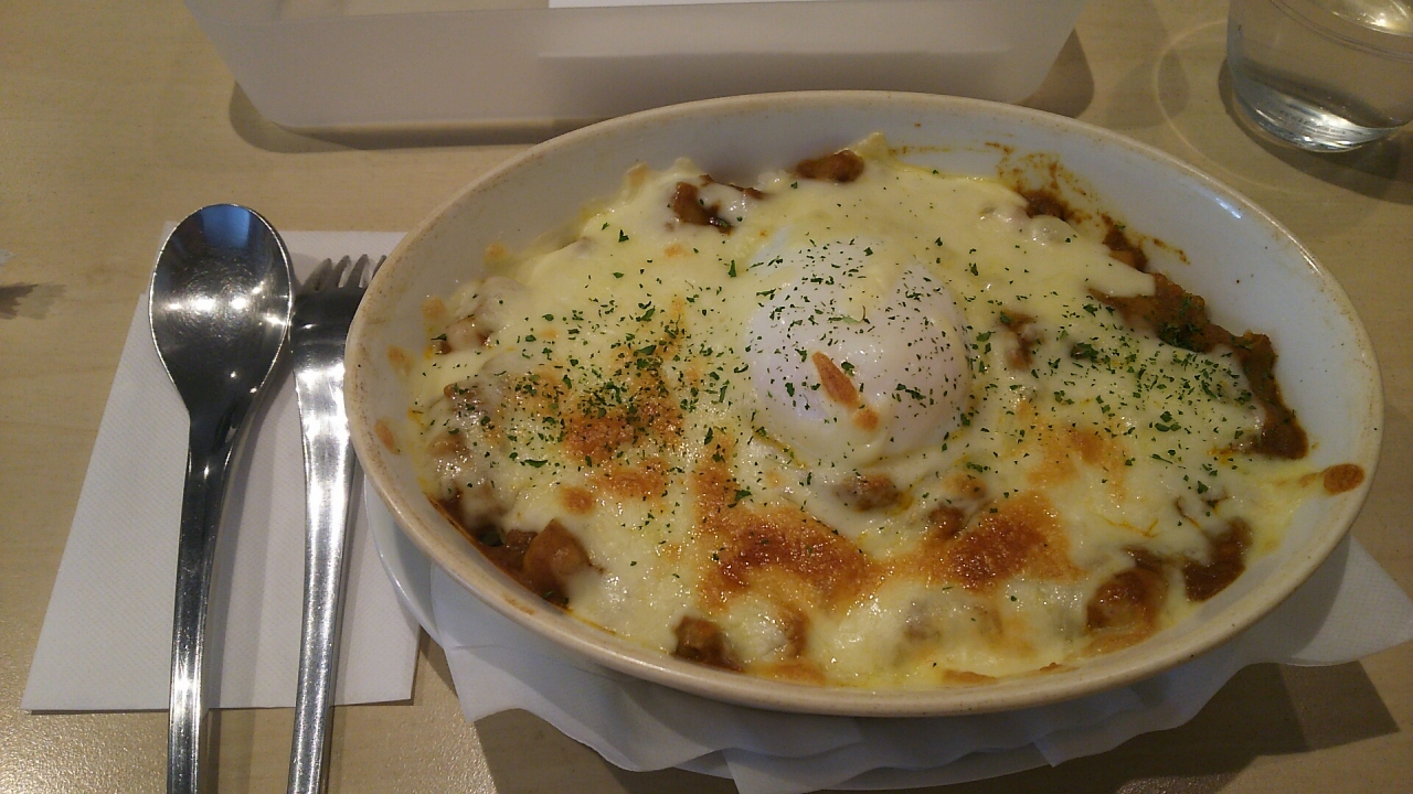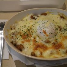 焼きカレーはボリュームもたっぷり、温泉卵も乗っていて美味しかったです。