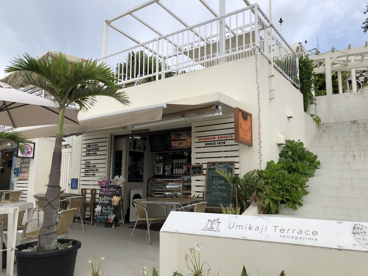 瀬長島にあります。雑貨屋さん、みやげもの屋さん、レストランなどが多数並んでいます。日本ではないような雰囲気です。坂面にあり、階段を上り下りしないといけないので、大きな荷物は持たないほうが良いです。