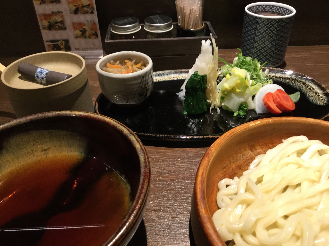 京都の河原町四条から東に行く先斗町の手前に有ります。つけ麺のうどんと、つゆがあって、付いている野菜やきんぴらごぼう、薬味を入れていただきます。野菜も綺麗に盛り付けしてあるので食べてしまうのが惜しいくらいです。麺は太めでコシがあり、野菜と一緒に味わって、思った以上にボリュームありました。店の雰囲気も落ち着いていて、居心地良かったです。