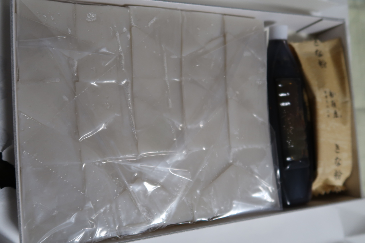 信玄餅に近い感じの味を想像していたが、くず餅があっさりめで、甘ったるくなくてさっぱりめ
