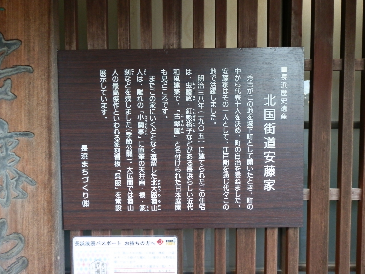 北国街道沿いには古い町並みが残っています。その町並みの中で並外れた風格を感じる建物があります。聞けば、秀吉がこの地を城下町として開いたとき、町の中から代表十人を決め、町の自治を委ねました。安藤家はその一人だったそうです。江戸期を通じ代々この地で活躍した家柄です。
