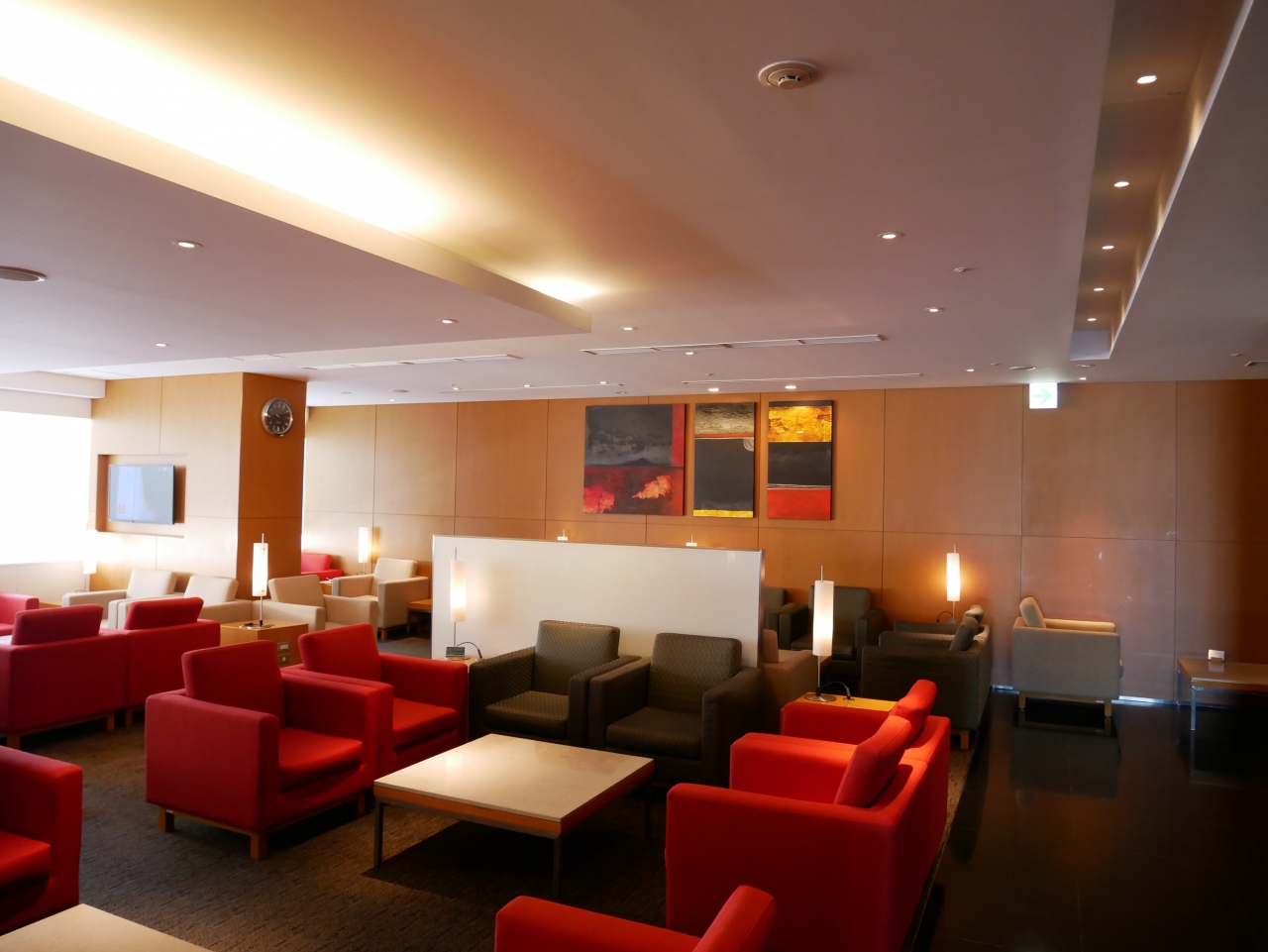 成田空港のキャセイラウンジ。決して広いラウンジではありませんが、キャセイの便の出発前以外は利用者はあまりいないようで訪問時はがら空きでした。食べ物はあまり豊富ではなく、食事メインと考えると物足りませんが、搭乗前の時間をゆっくり過ごすことができました。