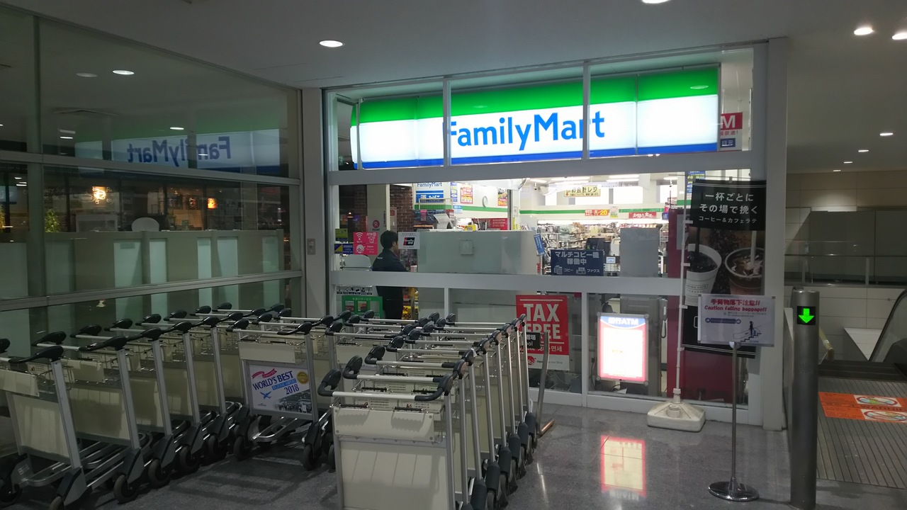 セントレアのアクセスプラザにあるファミリーマート。どんな交通機関でセントレアに訪れたときもすぐに目がつくので、利用率は高いです。アクセスプラザより先が施錠されていた早朝便に搭乗したときは、時間つぶしの場所として重宝しました。