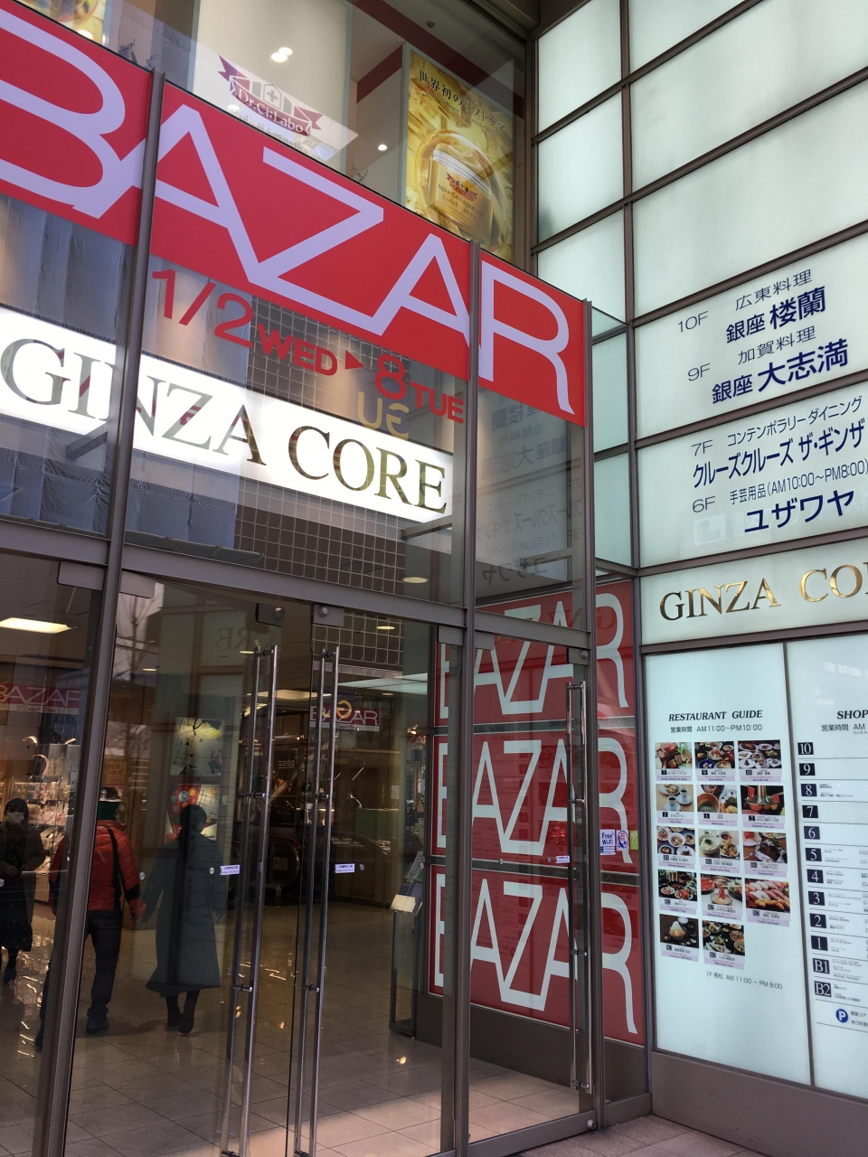 銀座4丁目で周りのビルがリニューアル中で隠れるように立っているのが銀座コアビル。