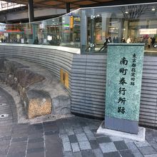 開発に際して発掘された遺構は写真に写る奉行所の石垣を始め地下広場にも数店展示されています。