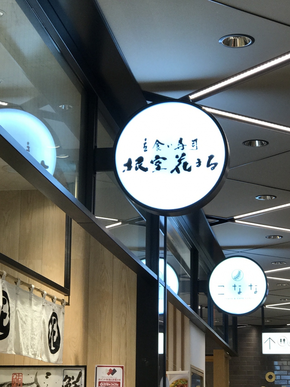 東急プラザの地下街は銀座駅から直結していて、便利な立地です。軽く食事を済ませたくて、立食い寿司 根室花まるに入りました。