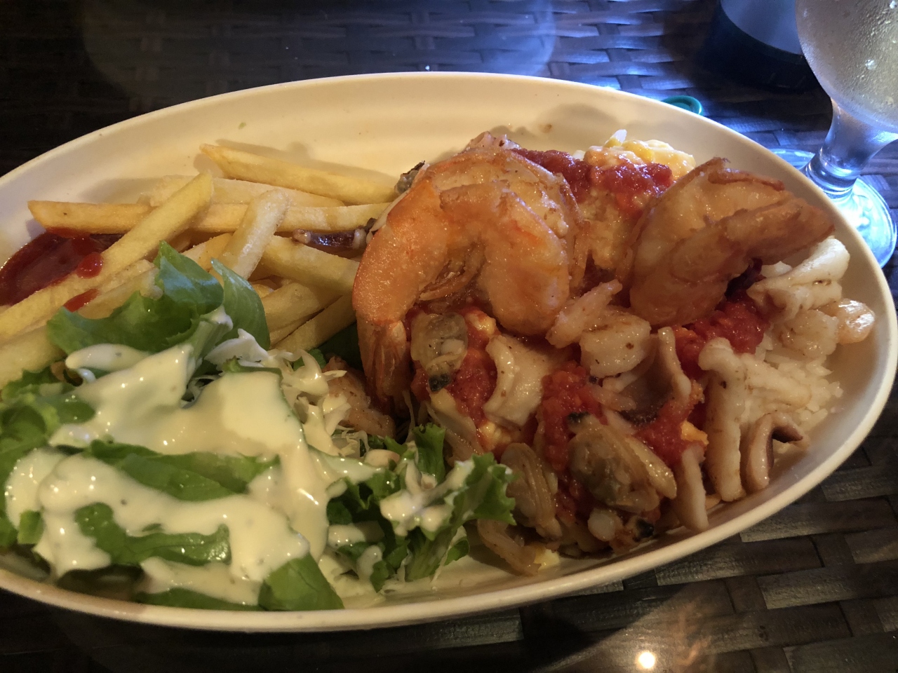 瀬長島ウミカジテラスにあります。スタッフの人は外国人の方でした。メニューたくさんあり、かなり迷いました。美味しかったですが、外国仕様でかなり量が多かったです。雰囲気が良く、沖縄で休暇をまったりすごすにはよいです。