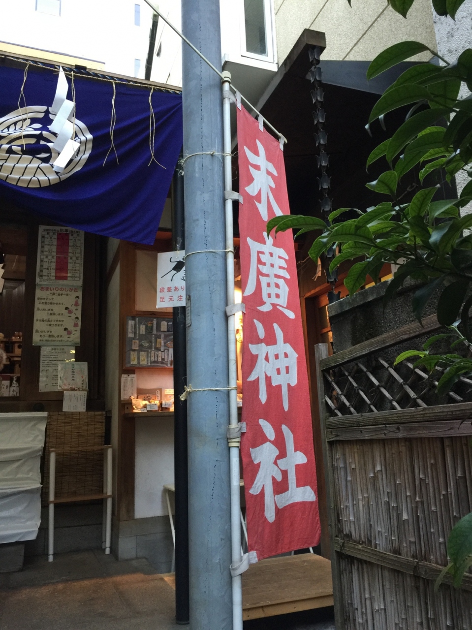 日本橋七福神の毘沙門天として祀られています。人形町の駅から歩いて3分ほどのビルとビルにはさまれた小さな小さな神社です。