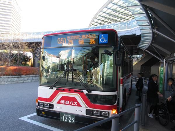 岐阜城からの帰り道に「岐阜公園・歴史博物館前」バス停からJR岐阜駅まで乗車しました。この区間は頻繁運転のようなので便利でした。岐阜駅に近づくにつれて少しづつ混み始めてきました。