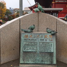 浅草寺の境内、本堂正面の左手に鳩ポッポの歌碑があります。そう「ポッポッポ鳩ポッポ、豆が欲しけりゃ…」と誰もが知っているあの童謡は浅草寺の境内で鳩と戯れる子供達の様子を唄ったものだそうです。また、この童謡を作曲したのは滝廉太郎だとは知りませんでした。碑の上にある鳩は今にも動きそうでよくできています。