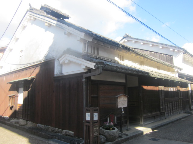 江戸時代の街並みが残る今井町域内の南側、御堂筋沿いにある旧家で、ここは元々は「米彦」という屋号のお米屋さんとして栄えたところです。18世紀に建てられた平屋建築で、重要文化財に指定されていますが、普段は非公開なのが観光客的には残念に感じました。正面には厨子二階と呼ばれる、後年の増築部分も確認できますので、外観から旧家の風情を感じておかれると良いかと思います。