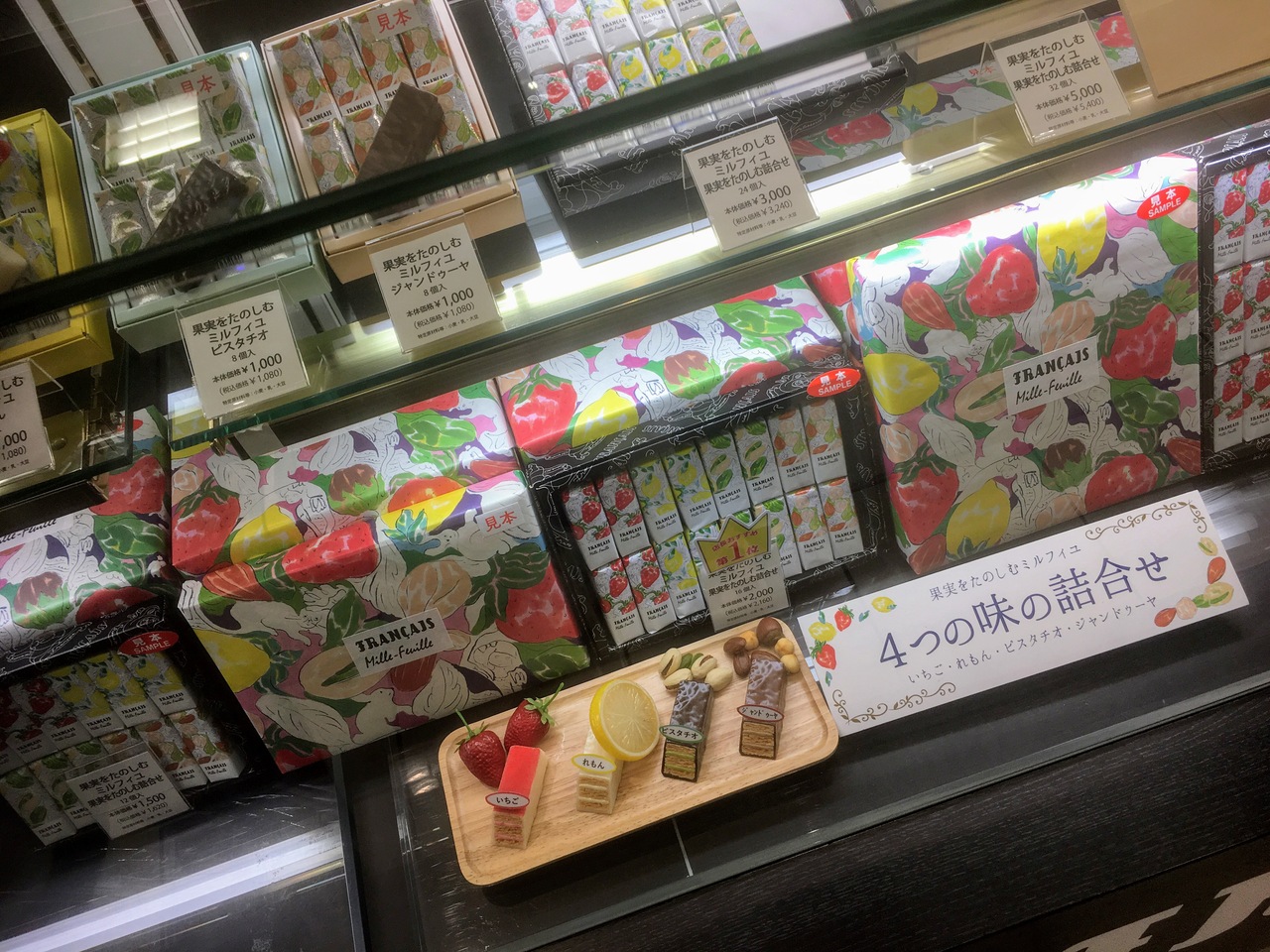 いろんな種類のミルフィーユを試食させてもらえるので結構参考になります。