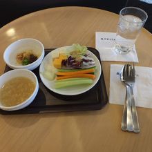 野菜スティック サラダ チーズ2種 中華粥 玉子と蟹のスープ