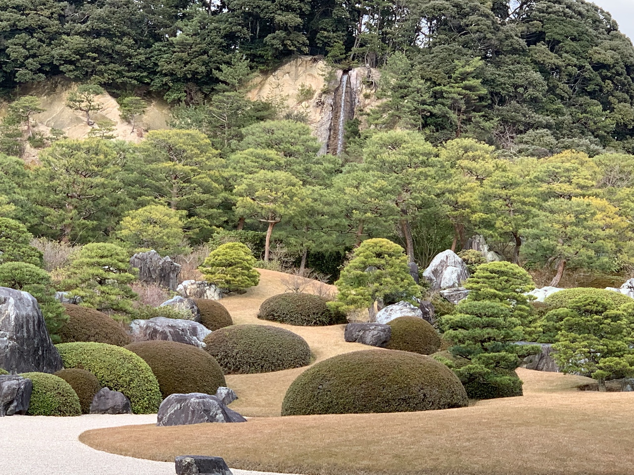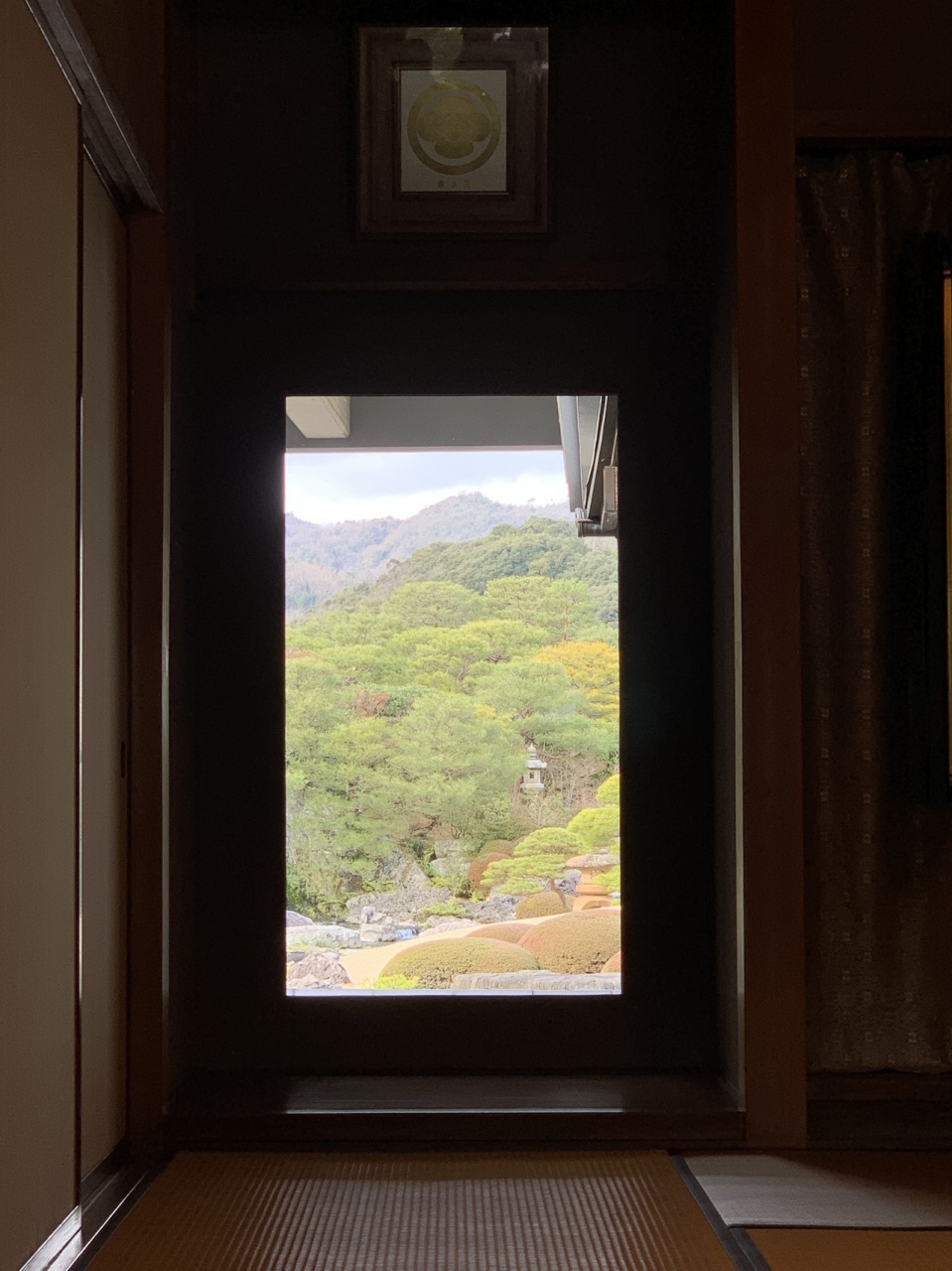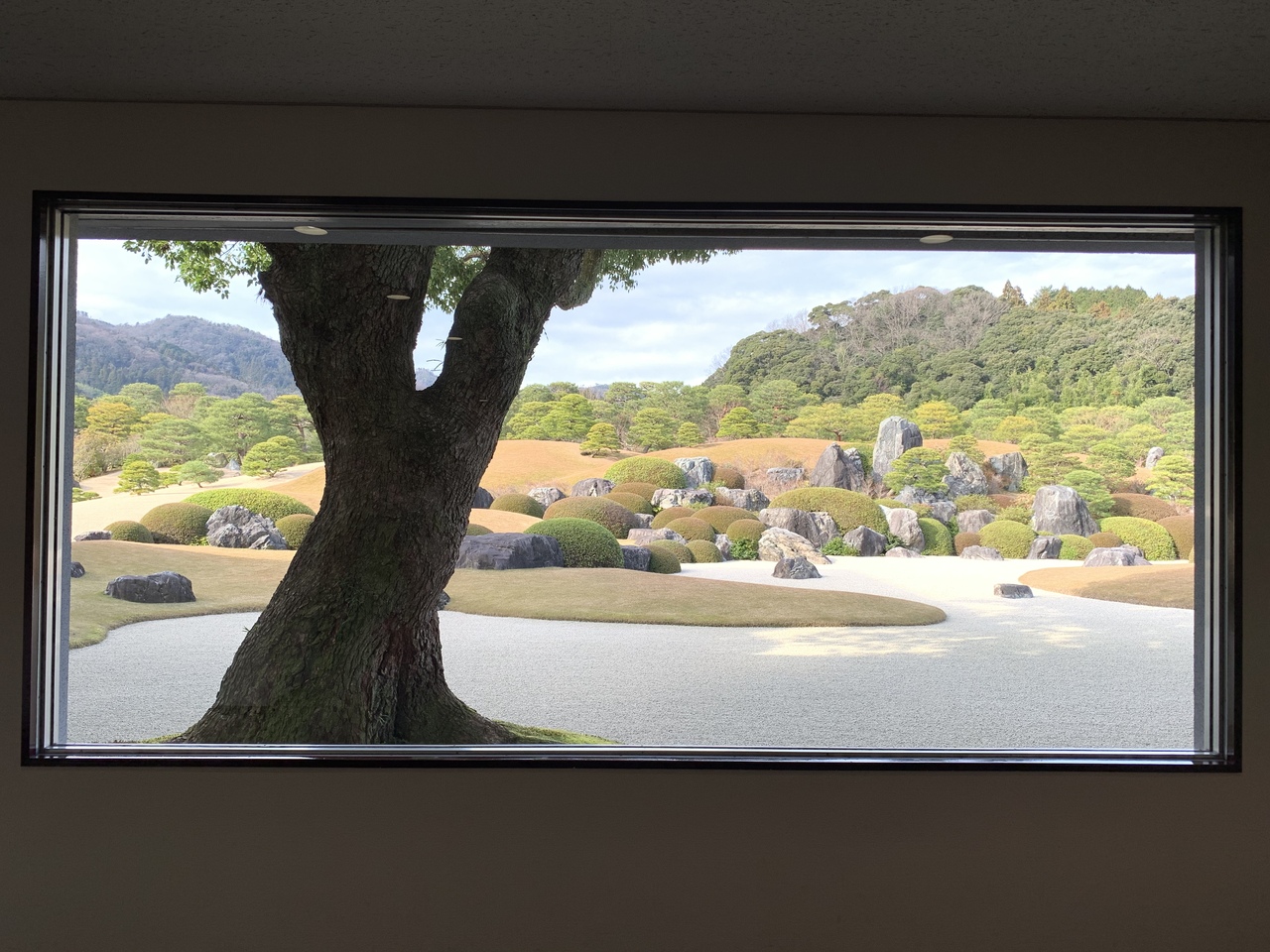 ミシュラングリーンガイド3つ星の足立美術館がずっと気になっていたので行ってみました。まず、入場料は2,300円。5万坪の日本庭園なので観るところも満載だろうなと思ったらメインの枯山水庭園はガラス越しから観るだけ。外から実際に見えるのは端の方からなので微妙な位置。生の額絵と照明があって額の部分は真っ黒にはならないし。日本家屋から観る生の額絵も日本家屋と庭園の直線上の間に外から実際に日本庭園が見えるスペースがあり皆そこで撮影をするため生の額絵は人が大勢集まった日本庭園って感じ。ここの生の額絵から人がいない写真を撮るのは無理です。特に団体客が入ってきたら最悪。横山大観の作品もあったけどトータルでみても2,300円は高すぎる。5万坪の日本庭園は素晴らしいけど、ガラス越しでは感動も半減。私は京都の枯山水を生で観る方がいい。