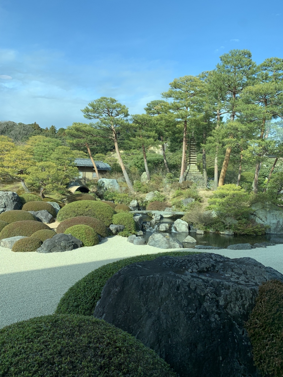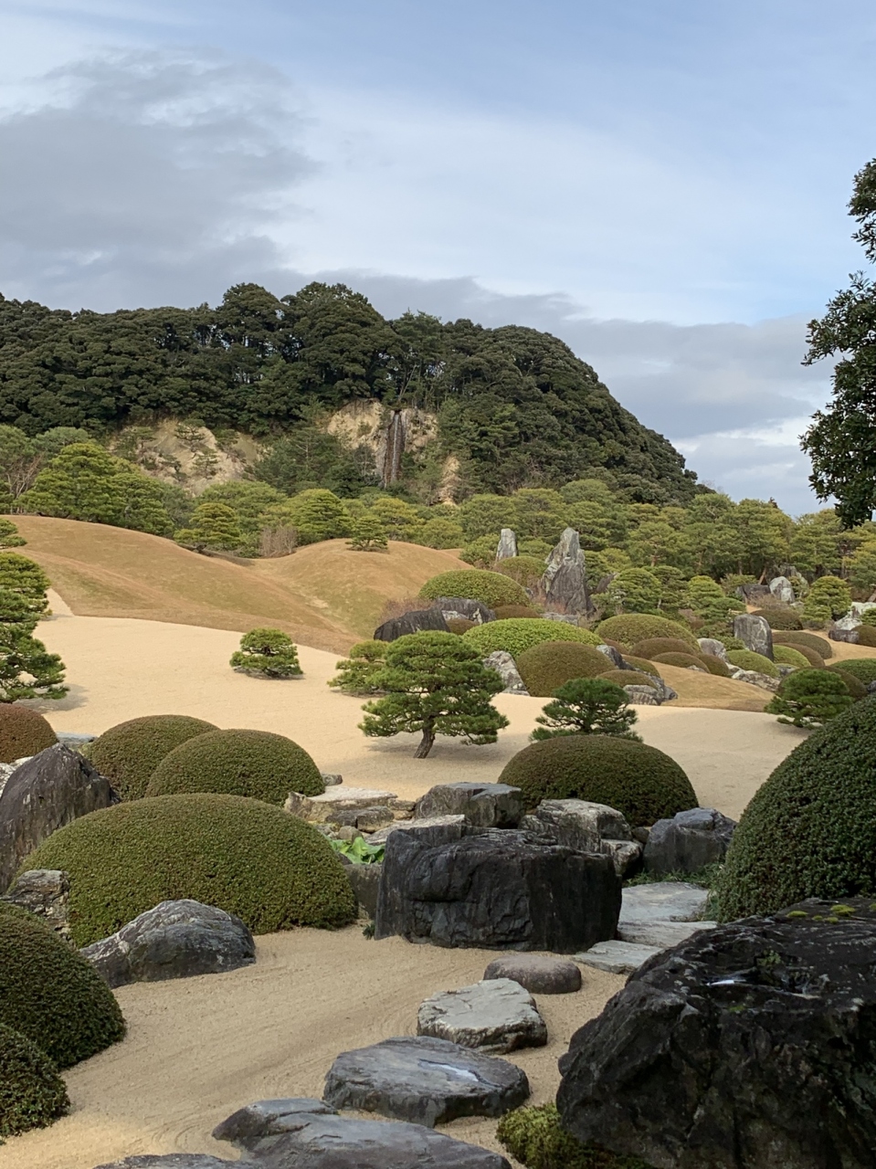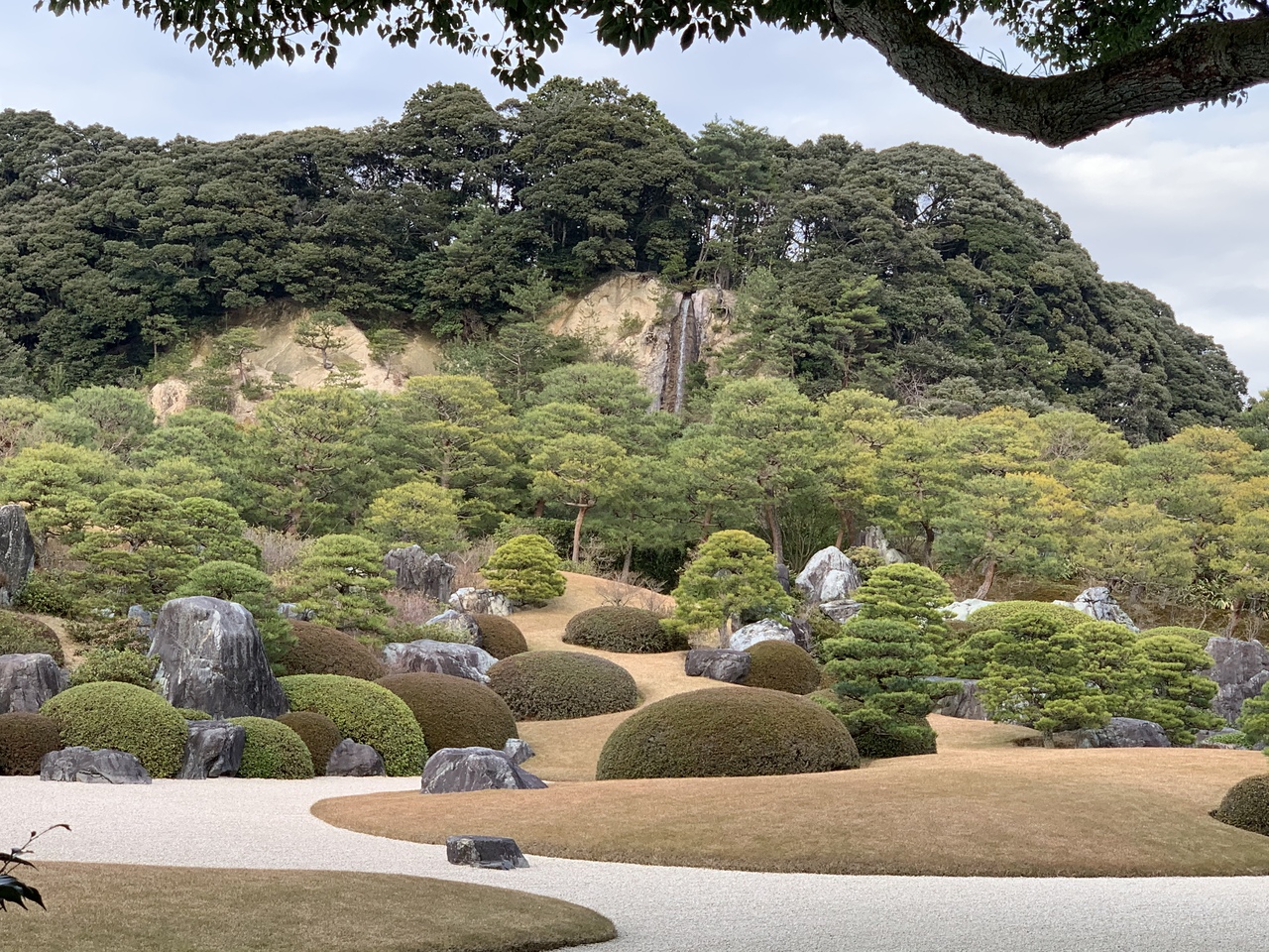 ミシュラングリーンガイド3つ星の足立美術館がずっと気になっていたので行ってみました。まず、入場料は2,300円。5万坪の日本庭園なので観るところも満載だろうなと思ったらメインの枯山水庭園はガラス越しから観るだけ。外から実際に見えるのは端の方からなので微妙な位置。生の額絵と照明があって額の部分は真っ黒にはならないし。日本家屋から観る生の額絵も日本家屋と庭園の直線上の間に外から実際に日本庭園が見えるスペースがあり皆そこで撮影をするため生の額絵は人が大勢集まった日本庭園って感じ。ここの生の額絵から人がいない写真を撮るのは無理です。特に団体客が入ってきたら最悪。横山大観の作品もあったけどトータルでみても2,300円は高すぎる。5万坪の日本庭園は素晴らしいけど、ガラス越しでは感動も半減。私は京都の枯山水を生で観る方がいい。