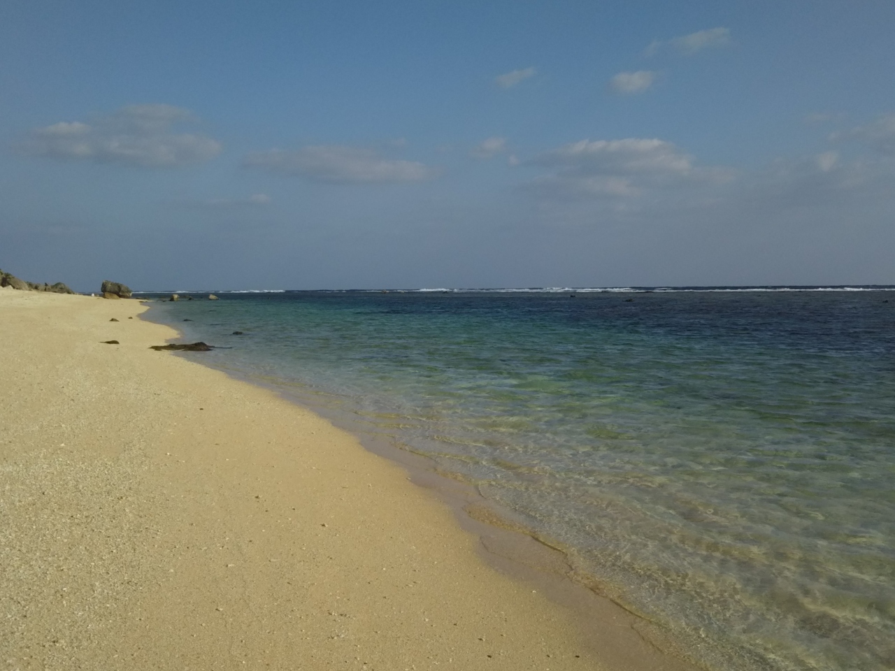 周辺はあまり開発されておらず、ビーチでは人工物がほとんど目に入りません。シュノーケルポイントとして有名なようですが、シーズンオフゆえ他に誰も人はおらずプライベートビーチ気分に。当然水の透明度は高く、天気が良ければ宮古島に来た感が強くなるスポットでした。