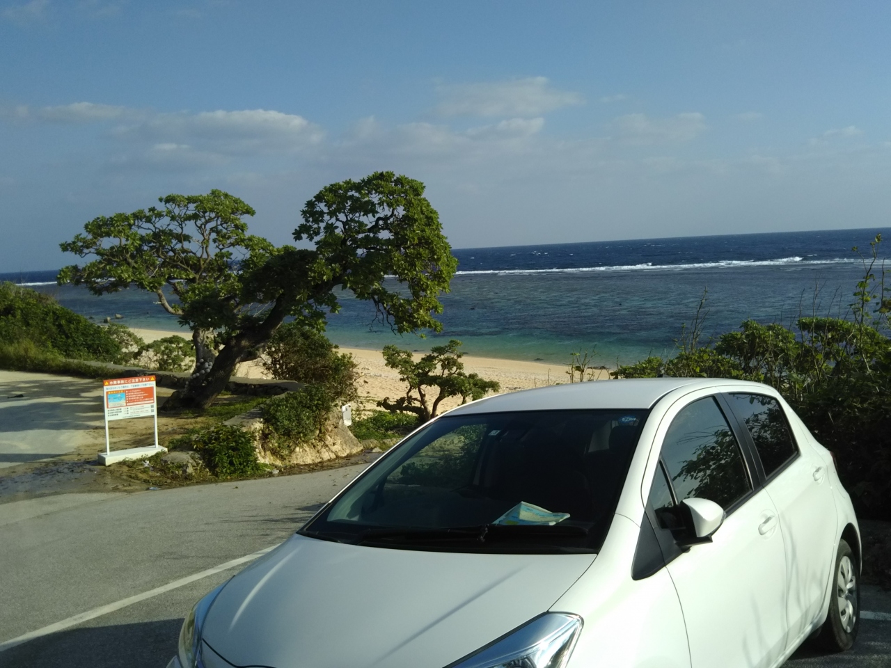 高台に駐車場や更衣室・売店がありシーズンは海岸まで歩いて坂道を下るようですが、12月はこれらの施設はクローズ、車のままビーチ近くの駐車場まで行くことができました。