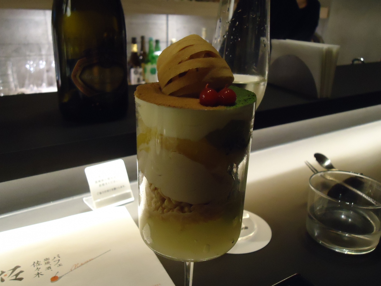 佐藤の姉妹店ということで暖簾もメニューもそっくりです。こちらも入店まで待ちましたが建物の中で待っていられたのでよかったです。お酒とパフェのセットで頼みました。女性がゆっくり話をするのに空間も、料理もとてもよいお店だと思いました。
