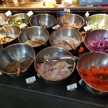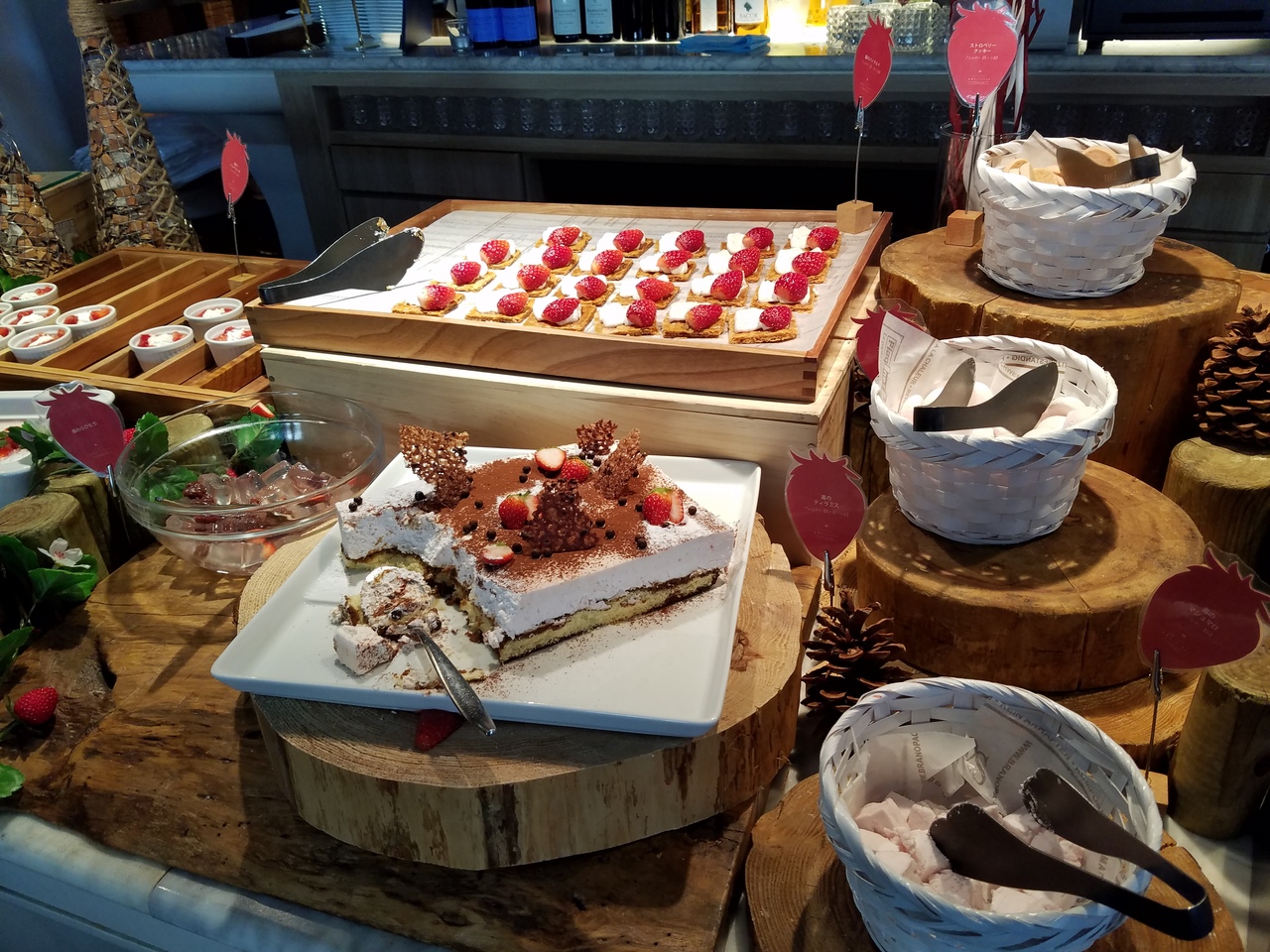 季節限定の苺のデザートブッフェがあるということで行って見ました。サラダとデザートがブッフェでパスタ、ワンドリンクがついて3500円。ここは契約農家さんから届く野菜がおいしいお店。実際行って見ると種類豊富なサラダが並んでいて、ドレッシングも美味しかった。ラグーソースのごぼうパスタを頼みましたが、揚げた牛蒡が添えられていてパスタもおいしかった。楽しみにしていた苺のデザートが、残り少なくなっていて寂しい状態だった。写真と違って、生のイチゴは少なかった。味も普通で期待外れだった。