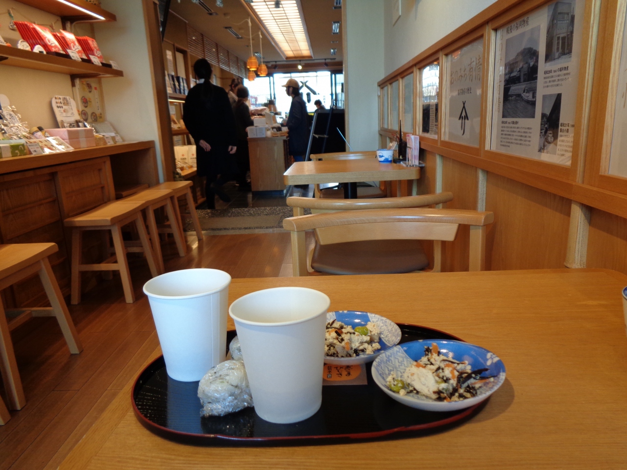 店舗の奥に席が用意され、お茶と共にゆっくり試食ができます。