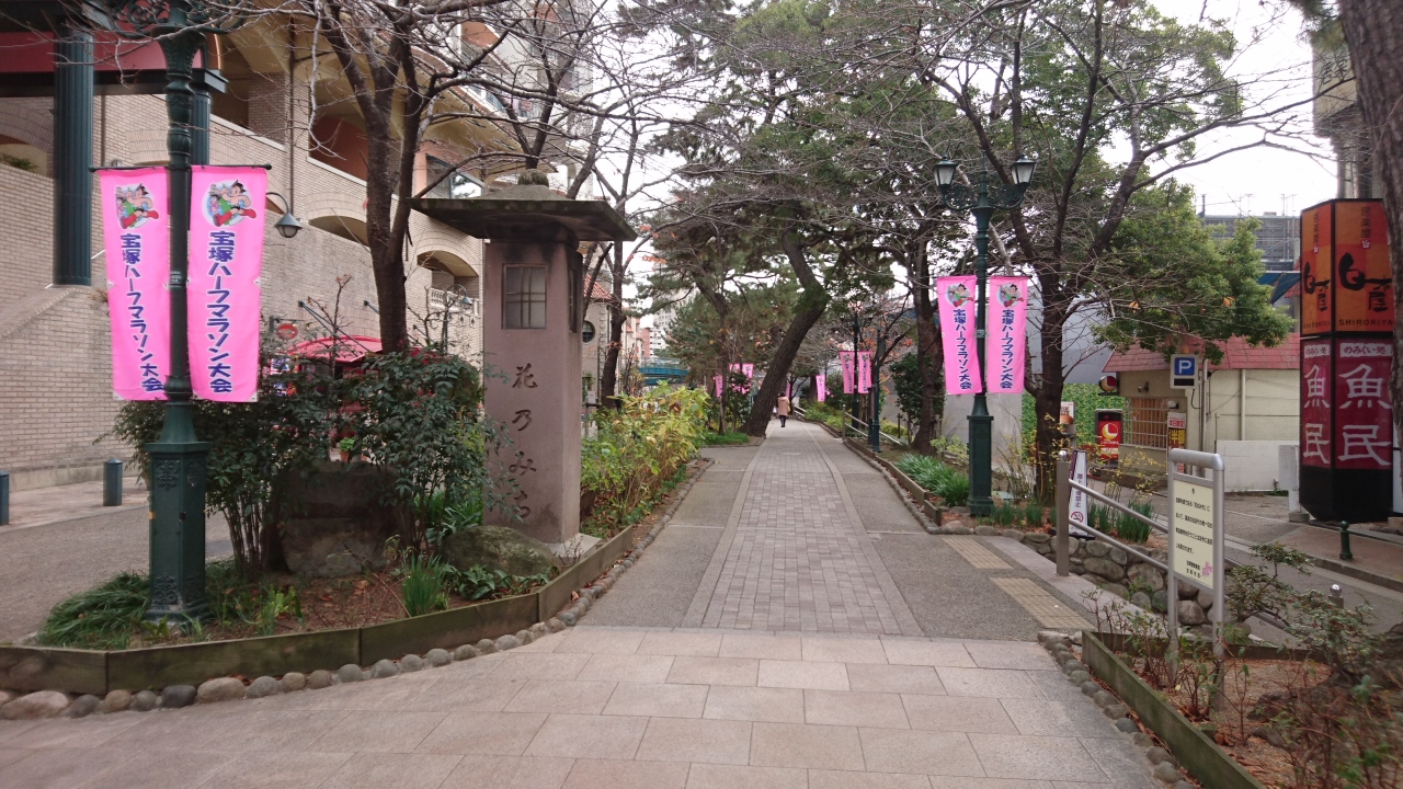 宝塚に来たときに、花のみちに行きました。花のみちは阪急宝塚駅から出てすぐのところにあり、道路を挟んだ歩道のことを言います。このとき言ったときは平日のお昼頃だったので、人は少なかったですが、宝塚大劇場の近くに行くと、数人宝塚ファンの方がいました。