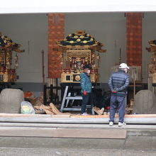 普段、三社祭の神輿は見られませんが、訪れた日はたまたま本手入れの日だったのか、本殿の右手に収められている神輿三基を見ることができました。祭りでない日に本物の神輿が見られラッキーでした。