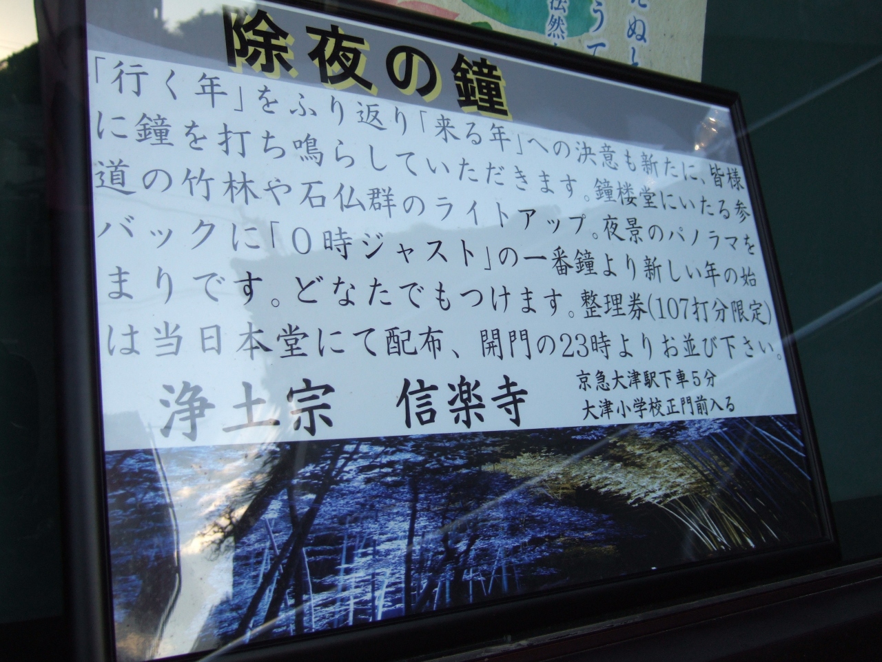 坂本龍馬の妻、おりょうさんのお墓がある信楽寺。今年も除夜の鐘をやっていました。例年通り0時ジャストの一番鐘から107打限定で、大晦日の23時から整理券を配っていました。前年までは500円かかりましたが、今年は無料でした。
