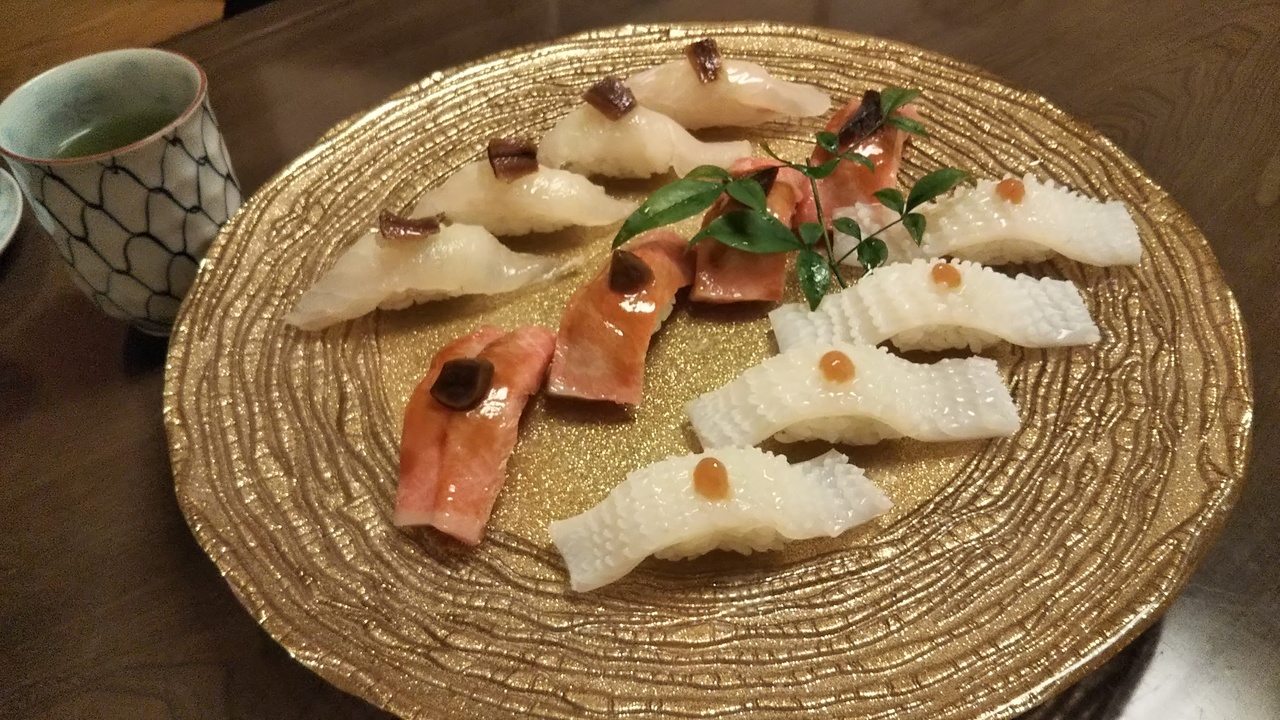 福岡の有名な寿司やさんです。久しぶりに昼食で利用しましたが、相変わらず味はよかったです。見た目も美しい握りがどんどん出てきて、お客さんも喜んでいました。雑居ビルの中なので外観は古いですが、奥に個室があるので接待にも使えます。