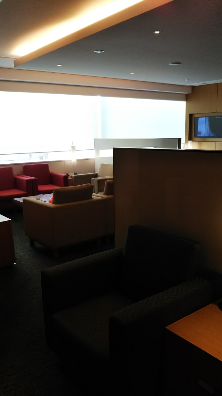 朝の遅い時間に利用しました。香港便のピーク後だったようで、あちこちに食器が残されており、あと片付けの最中のようでした。席はガラガラでゆったり休むことができました。ソファーが並んでいるだけで、窓からの景色もあまり見られず開放感はありませんでした。
