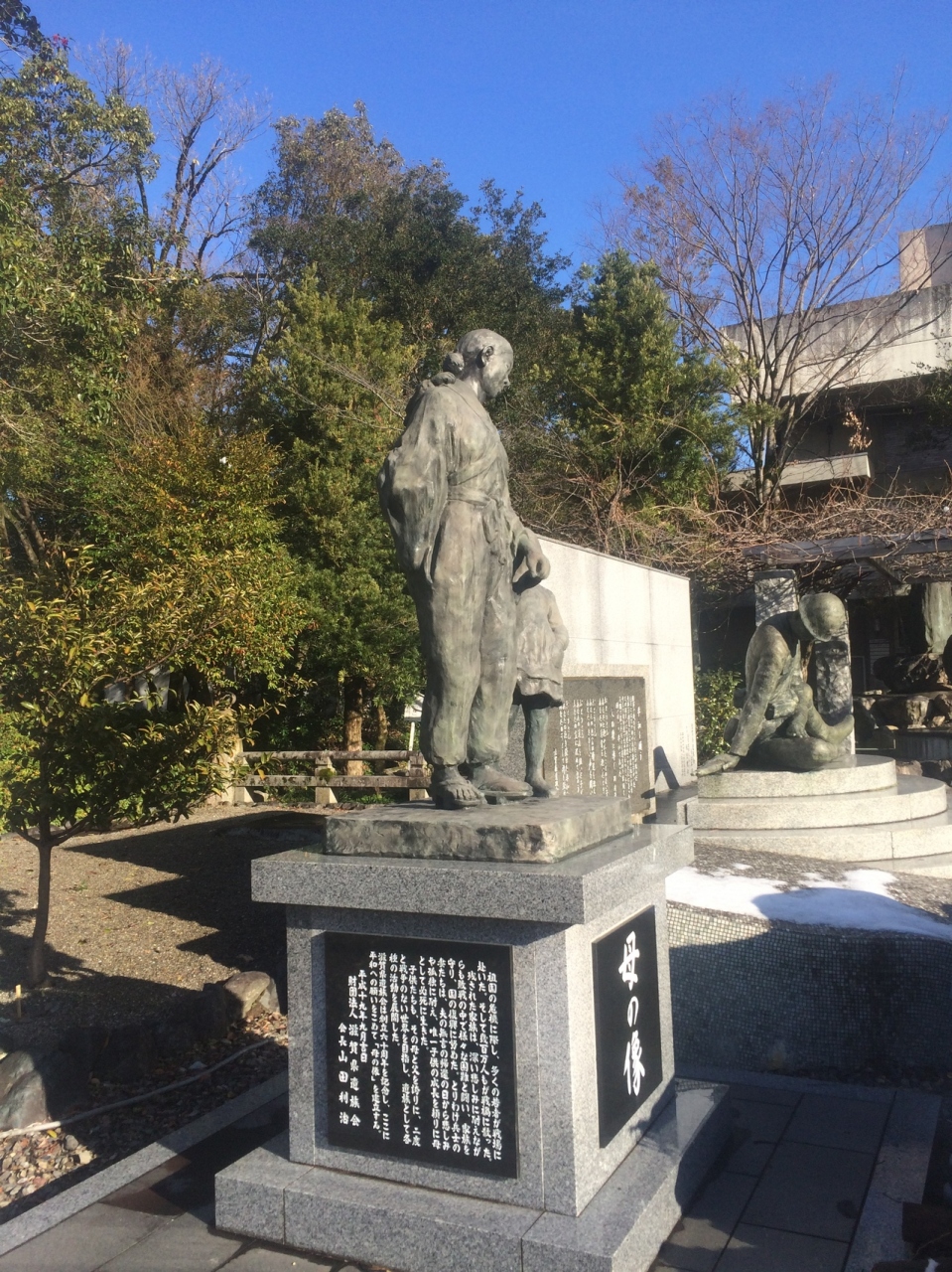 彦根城の手前にあり、鳥居が大きかったです。母の像と戦争姿をした像が隣合わせにあり衝撃的でした。奥の拝殿が立派な作りで、下部の木の建物と屋根が緑で急勾配の緑の雰囲気が特徴的でした。拝殿の前は広い空間のような広場でした。