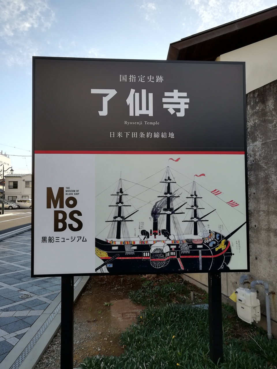 伊豆ドライブで下田へ。下田条約締結の場となった了仙寺です。境内からMoBS黒船ミュージアム横を通り抜けるとペリーロードです。ペリーロードは長さはあまり長くなくて往復でも10分もかかりません。駐車場は了仙寺の無料駐車場があります。お寺はあまり大きなお寺ではありませんが、歴史を感じます。境内に遺跡もあります。