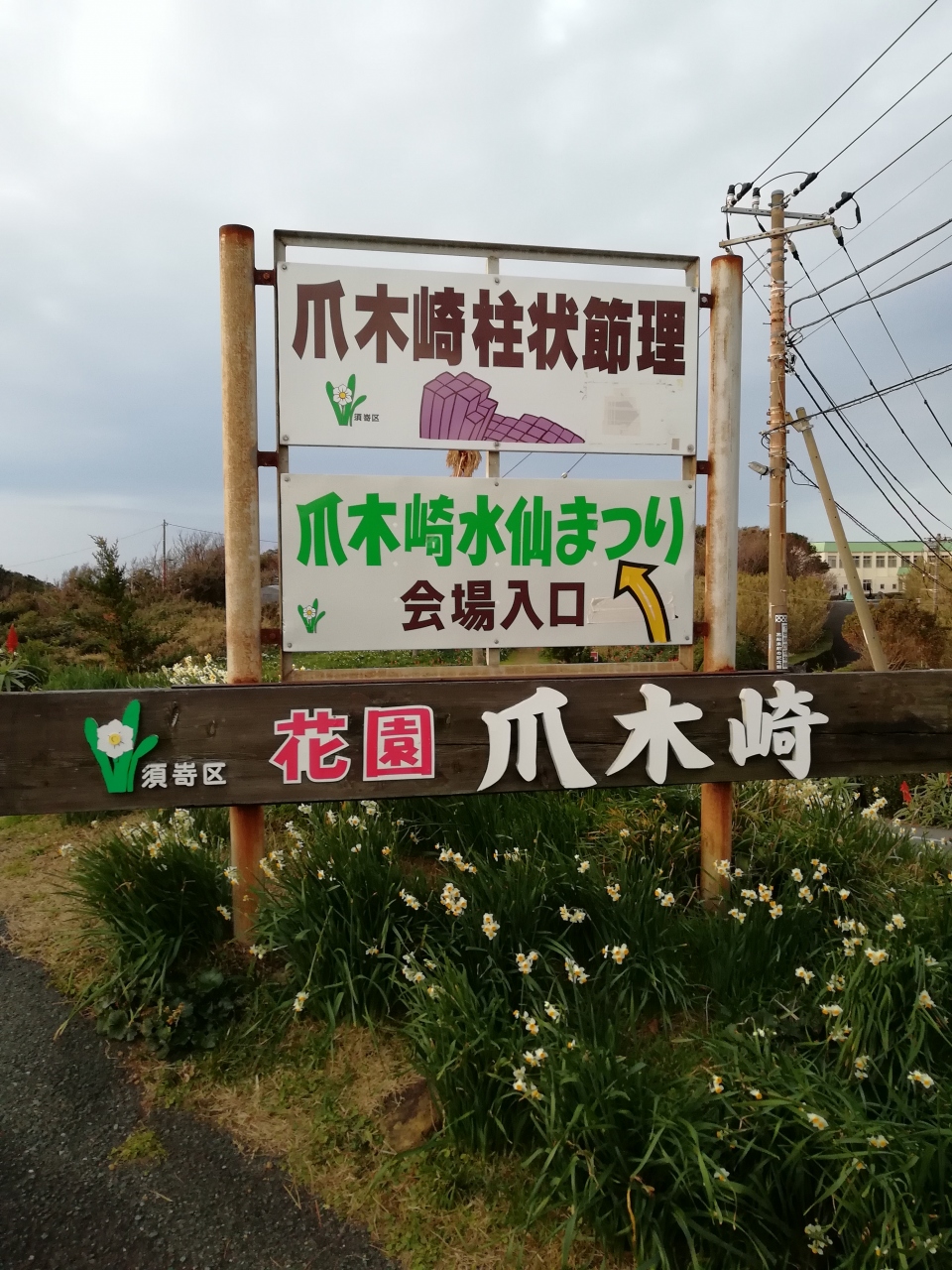 早朝の伊豆ドライブで下田の手前にある爪木崎に立ち寄りです。須崎半島から突き出した岬。駐車場から遠くの白い灯台と伊豆七島が見えます。駐車場は有料との事ですが、かなりの早朝でしたので係の方が不在でした。スズキ自動車のCMでロケ地に使われていますね。CMと同じようなアングルで写真がとれました。ちょうど水仙まつりの最中でした。