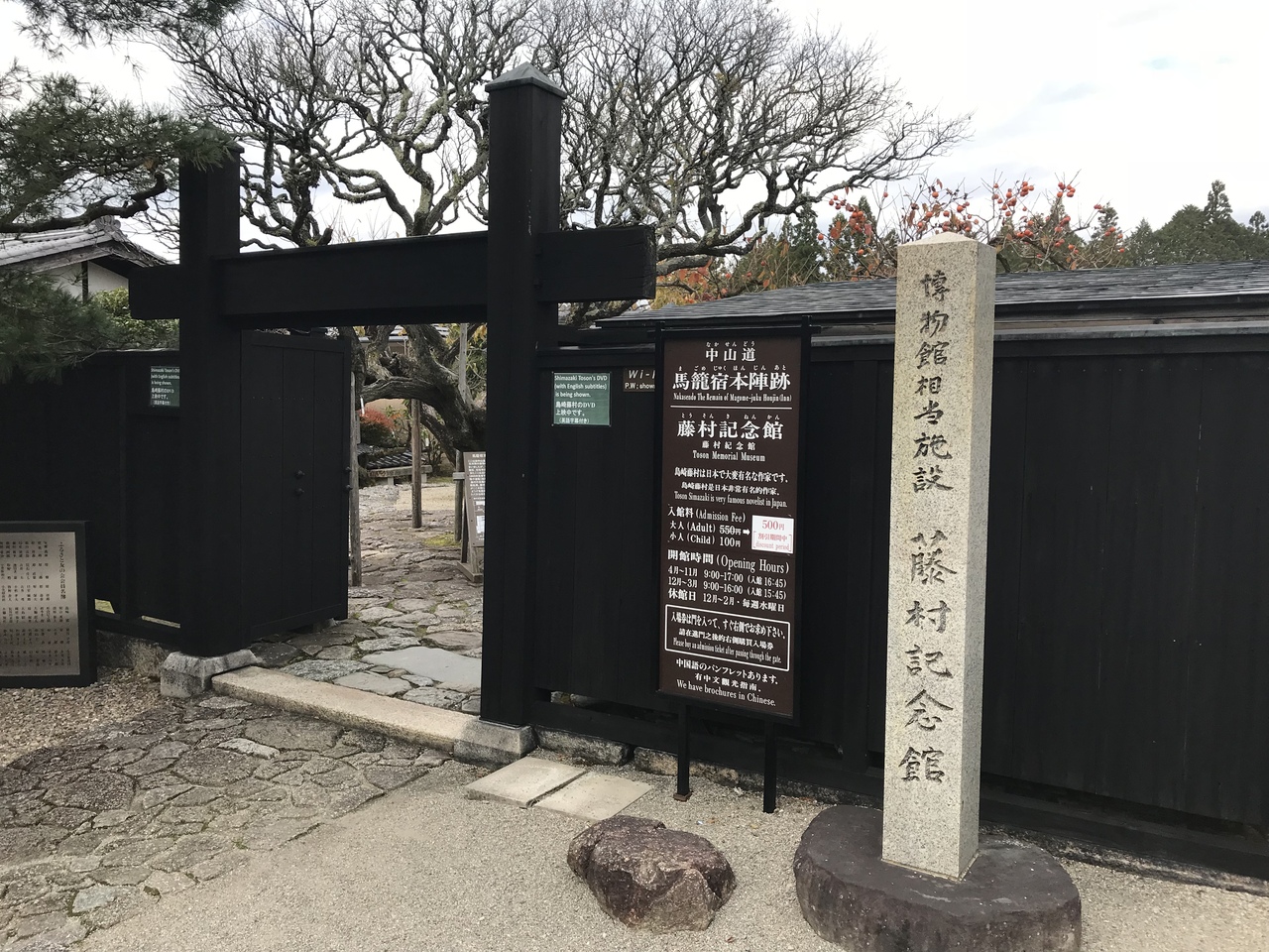 馬籠宿の坂を下っていると藤村記念館があった。これを見て島崎藤村が木曽の人間だと知った。広くもない施設の入館料は500円(特別期間、通常は550円)もする。価値観の違いから通り過ぎる。