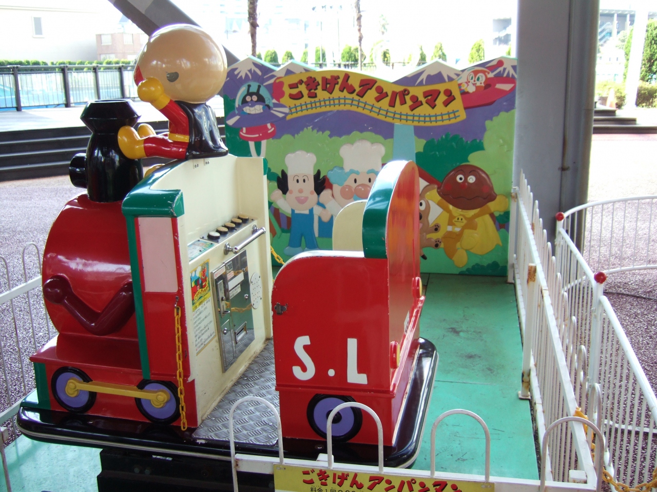運河を挟み、アトラクションがあるエリアと観覧車コスモクロックのエリアに分かれていますが、観覧車下には幼児向けの乗り物がたくさん。娘の中ではすっかり観覧車と乗り物がセットになっているようで、しばらくつき合わされますが、両替機も近くにあるので安心です。