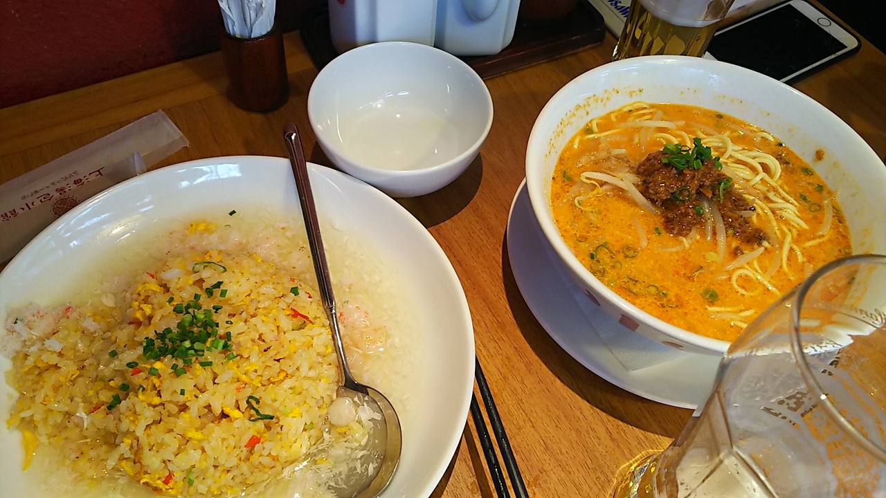 セットでカニチャーハンと担々麺をオーダーして、シェアし、杏仁豆腐もいただきました(^-^)/